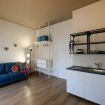 Two-room mini-apartment consisting of a double bedroom, bathroom with shower and a living room with kitchenette equipped with induction hob, mini fridge, microwave, kettle, coffee machine with capsules. The only unit with a small balcony outside, it can accommodate up to 4 people, two in the double bedroom and two in the brand new sofa bed.